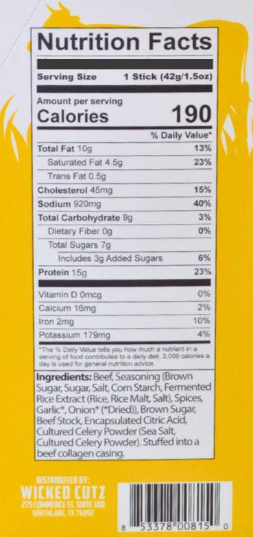 Wicked Cutz Beef Sticks are a rich source of protein, making them a nutritious snack option. The nutritional benefits of these Beef Sticks include: