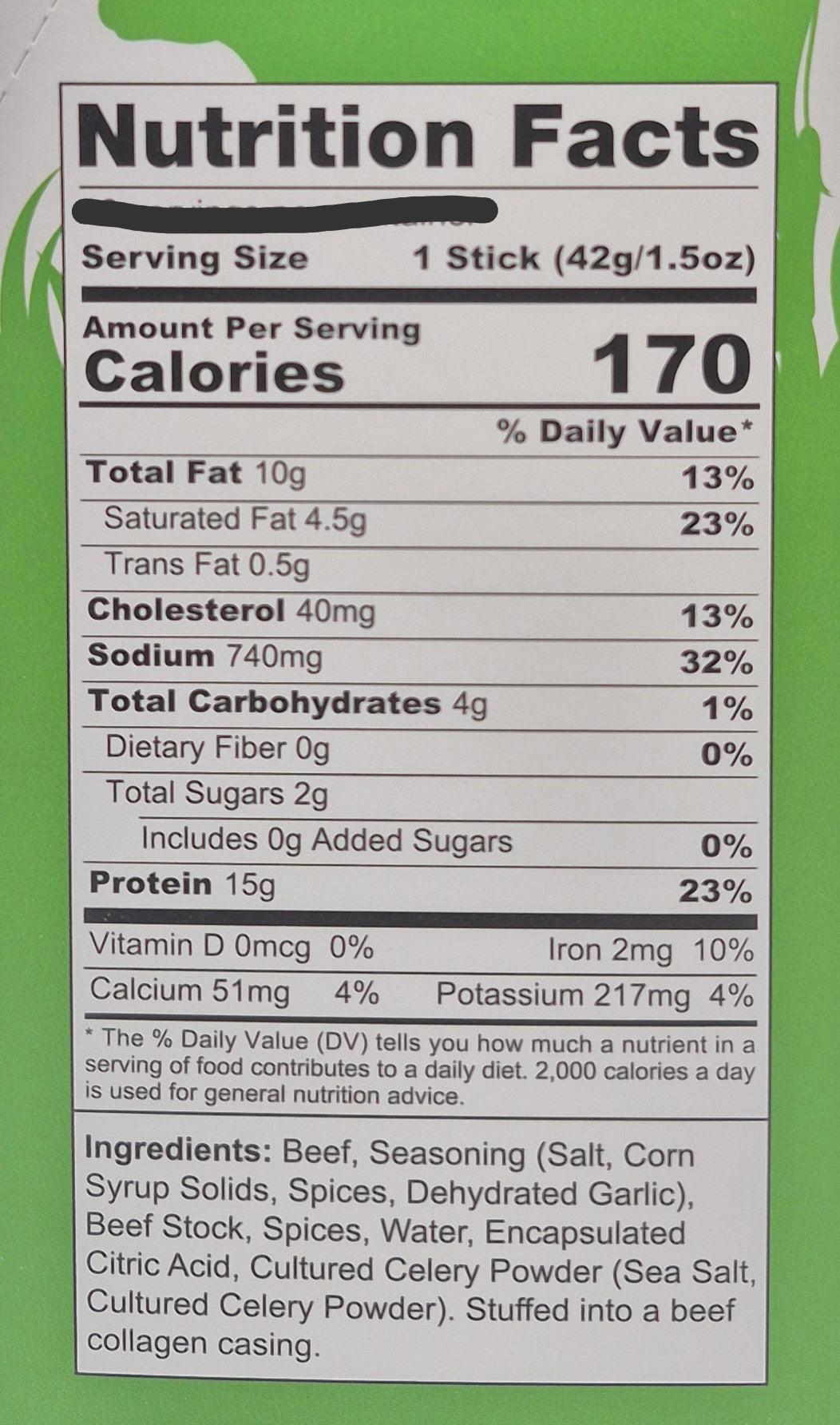 - High Protein Content: Each 1.5 oz stick contains approximately 12-15 grams of protein, making it an excellent protein source to support muscle health and keep you feeling full and satisfied