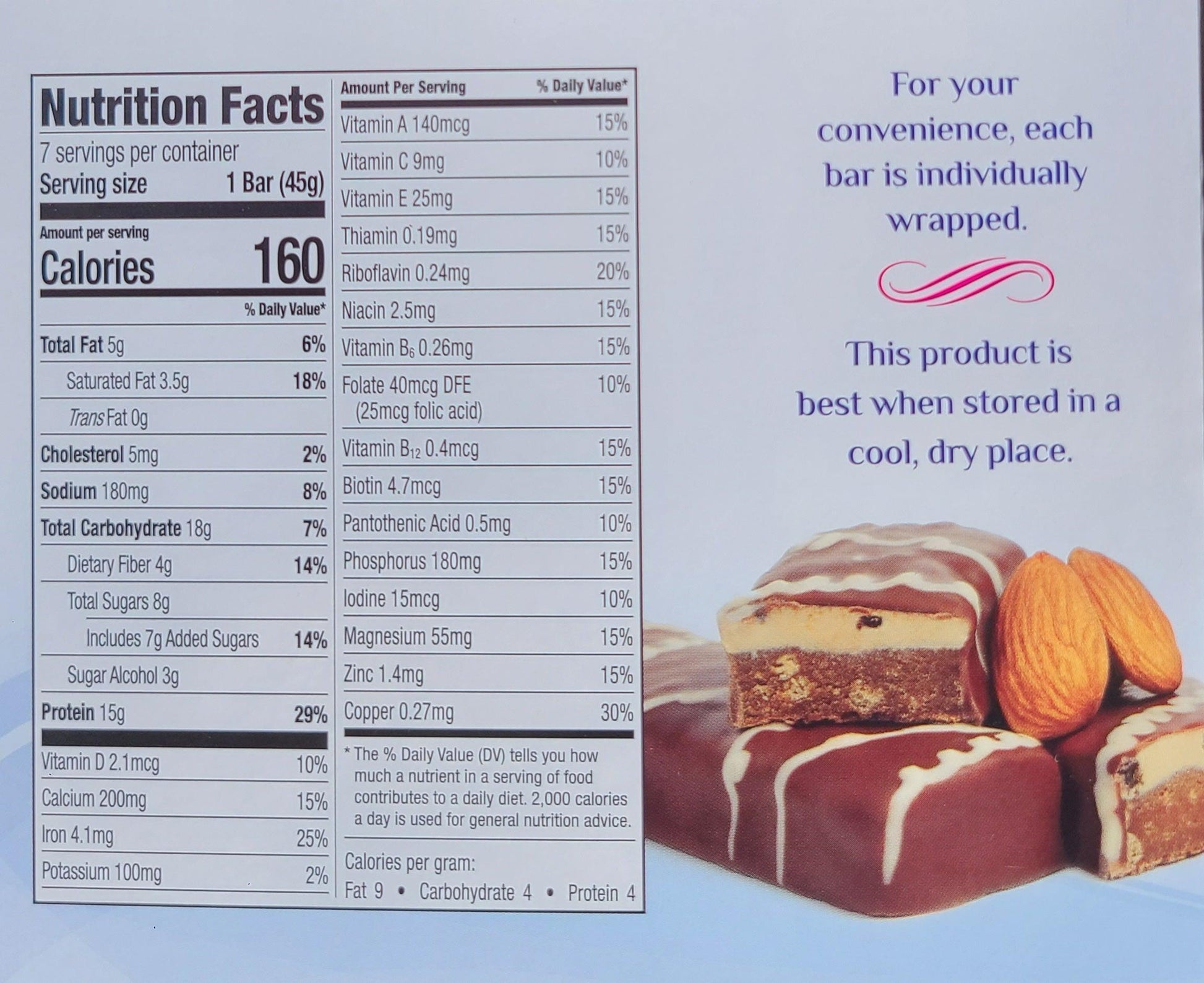 Chocolate Almond Protein Bar Details: