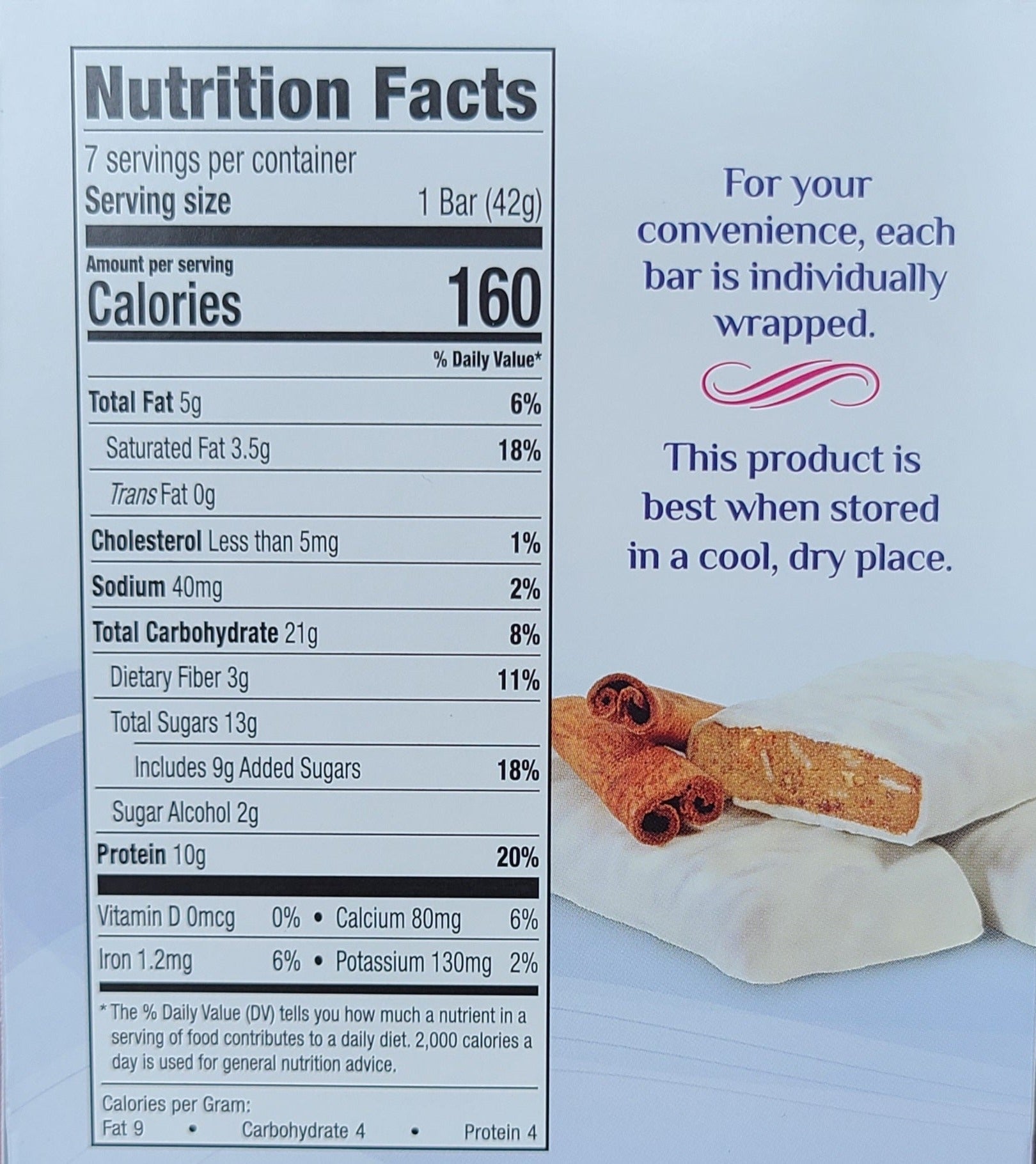Cinnamon Oatmeal Protein Bar Details: