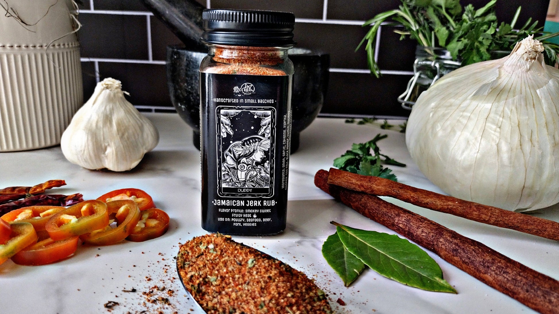 Experience the authentic taste of Jamaica with Duppy Jamaican Jerk blend. Inspired by Caribbean folklore, our blend uses whole allspice berries and a complex mix of spices for a true island flavor. Bring some spice into your life with Duppy.