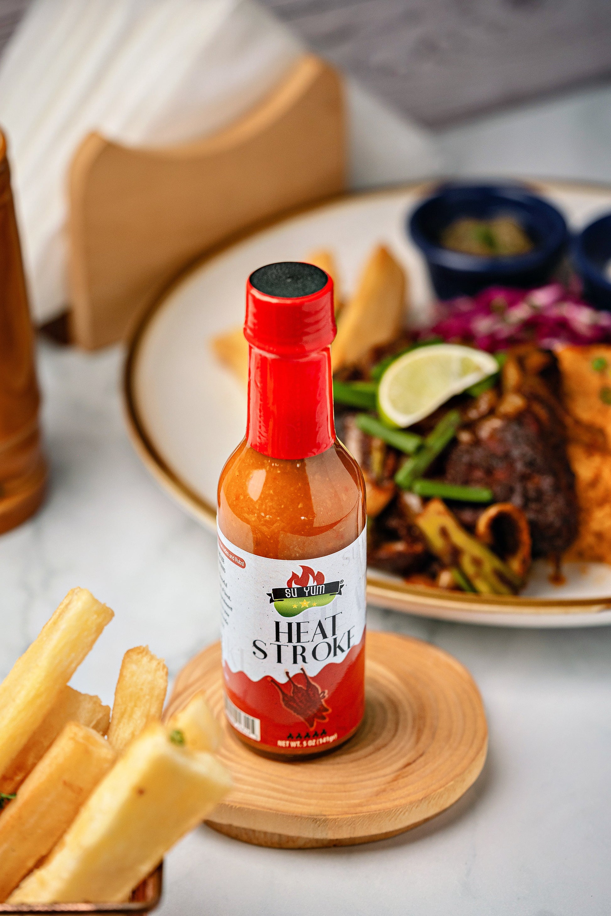 Meet Heat Stroke - our boldest, most intense hot sauce creation. This 5 oz bottle of liquid fire is crafted for true heat seekers who demand both flavor and serious spice. Not for the faint of heart!