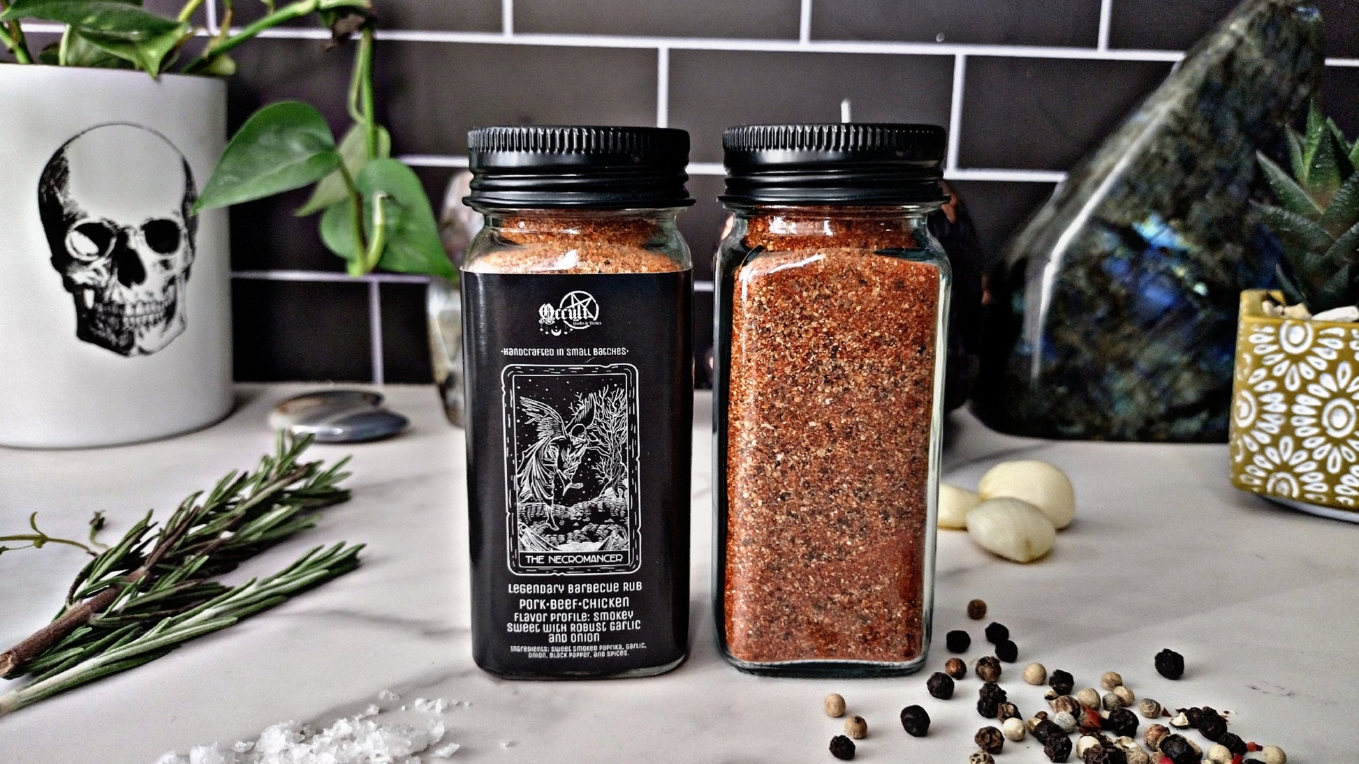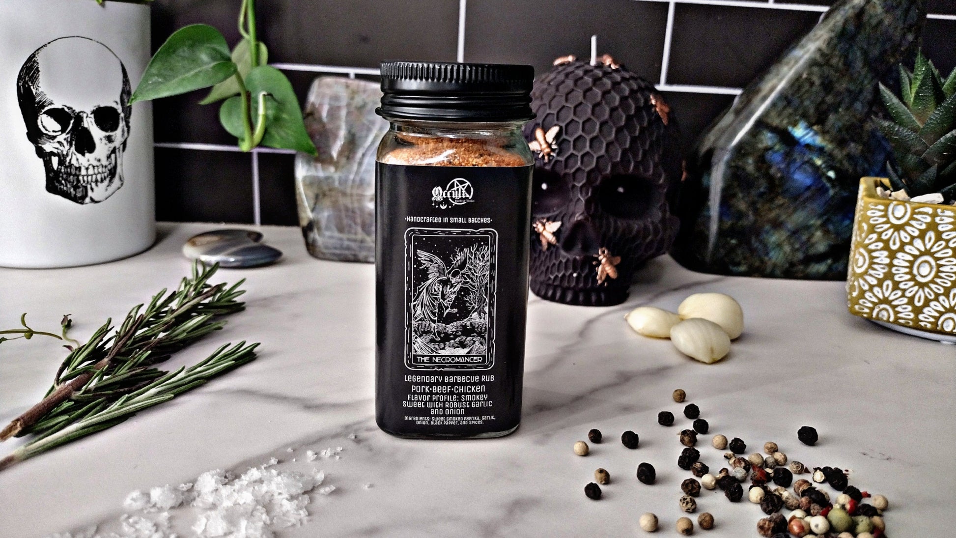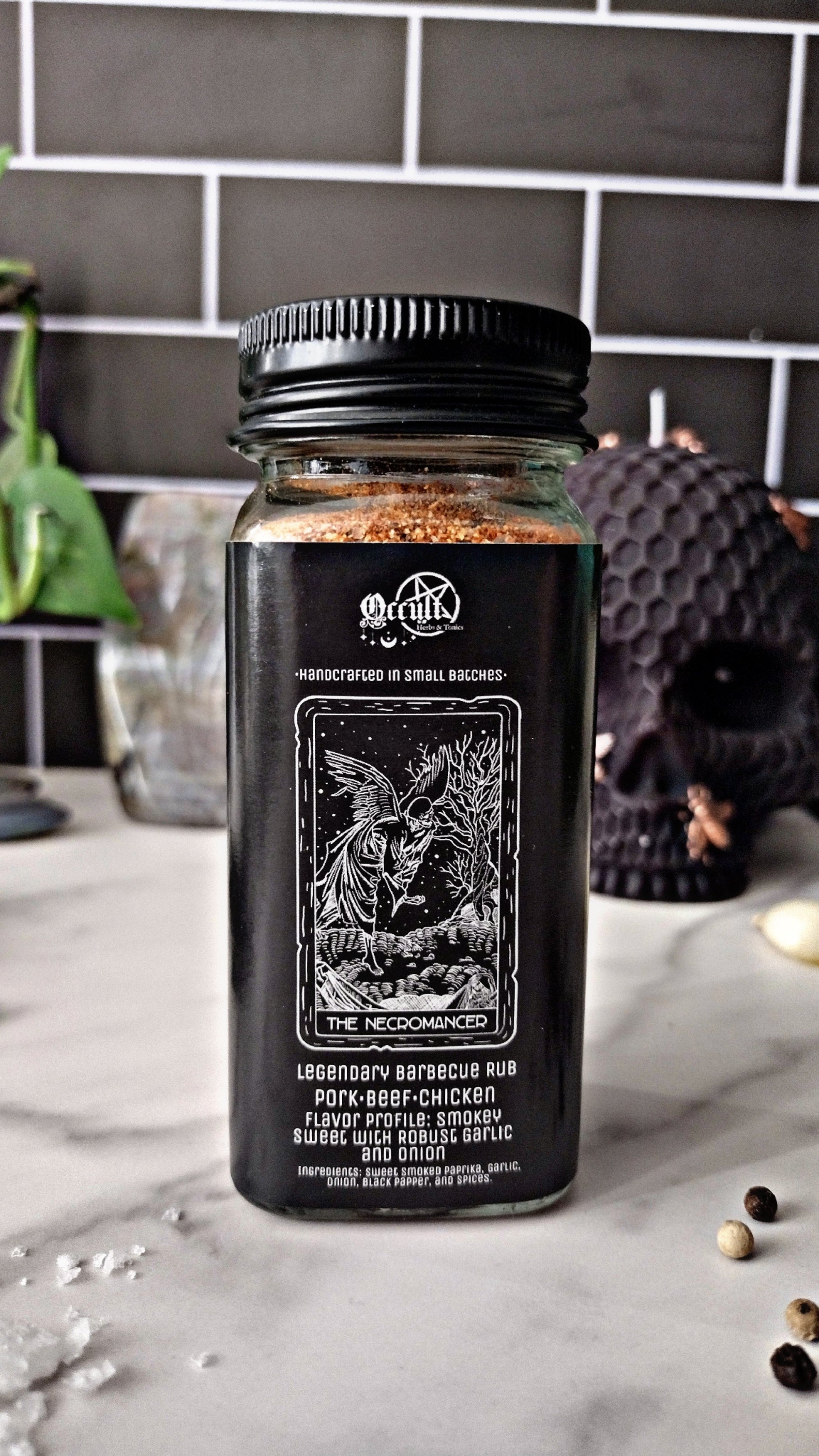 Barbecue is reborn in shadow and smoke. The Necromancer blend was forged for smoked meats and slow fires, channeling its dark magic into pork, chicken, and beef. A spellbinding fusion of smoky sweetness, savory garlic, and onion awakens flavors unlike anything you’ve conjured before. Handcrafted in small batches with carefully sourced ingredients, this blend is both ritual and revelation—summon it to your grill or smoker, and taste the power of resurrection.