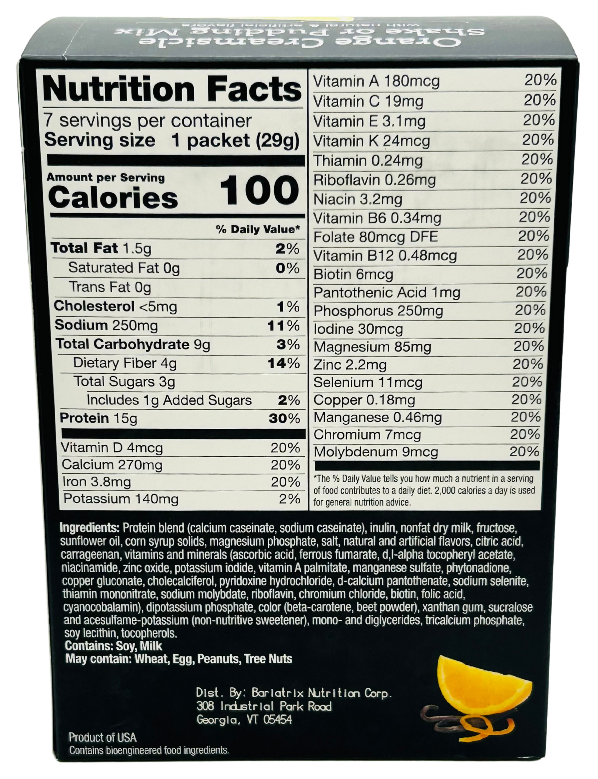 Try the enchanting fusion of sweet oranges and luscious creamsicle flavor in Proti-Max's Orange Creamsicle protein powder, packed with 15g protein, 4g fiber, and only 100 calories!