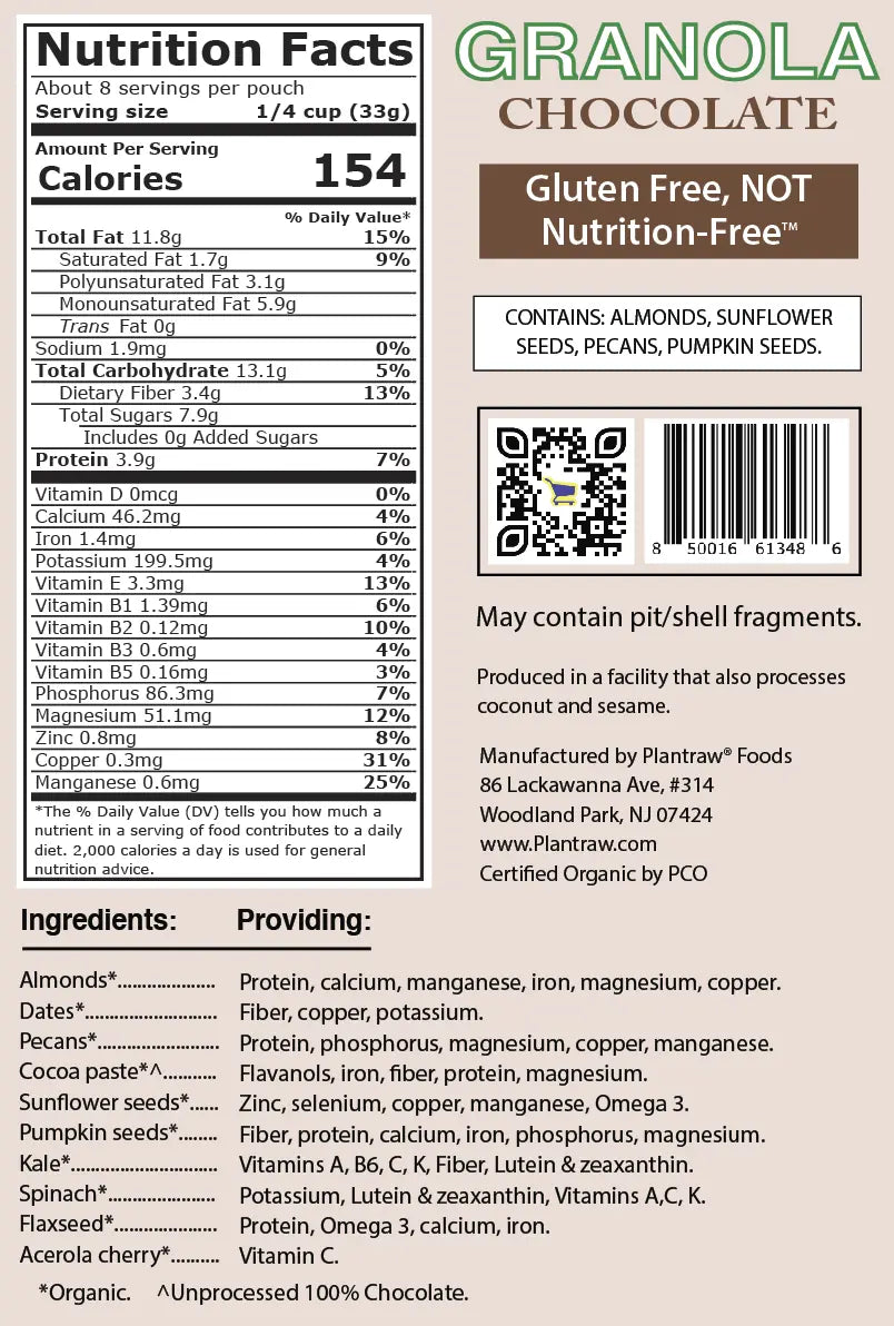 Ingredients: Almonds*, Dates*, Pecans*, Cocoa Paste*^, Sunflower seeds*, Pumpkin seeds*, Kale*, Spinach*, Flaxseed*, Acerola cherry*.