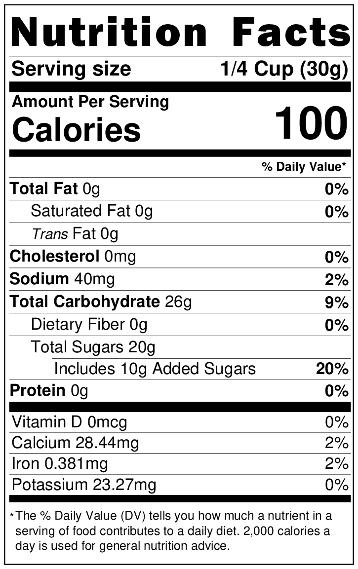 Allergen Statement: Product packed in a facility that also handles nuts, peanuts, soy, sesame, and wheat. 12 oz and 5 lb sizes only.