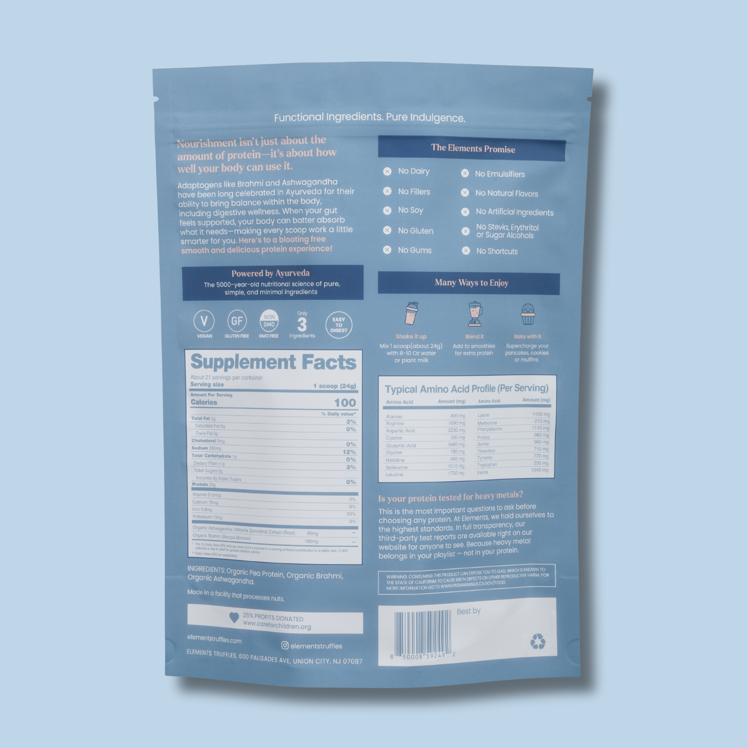 Enjoy this smooth plant based protein powder, powered by the science of Ayurveda. No fillers, gums or anything artificial.