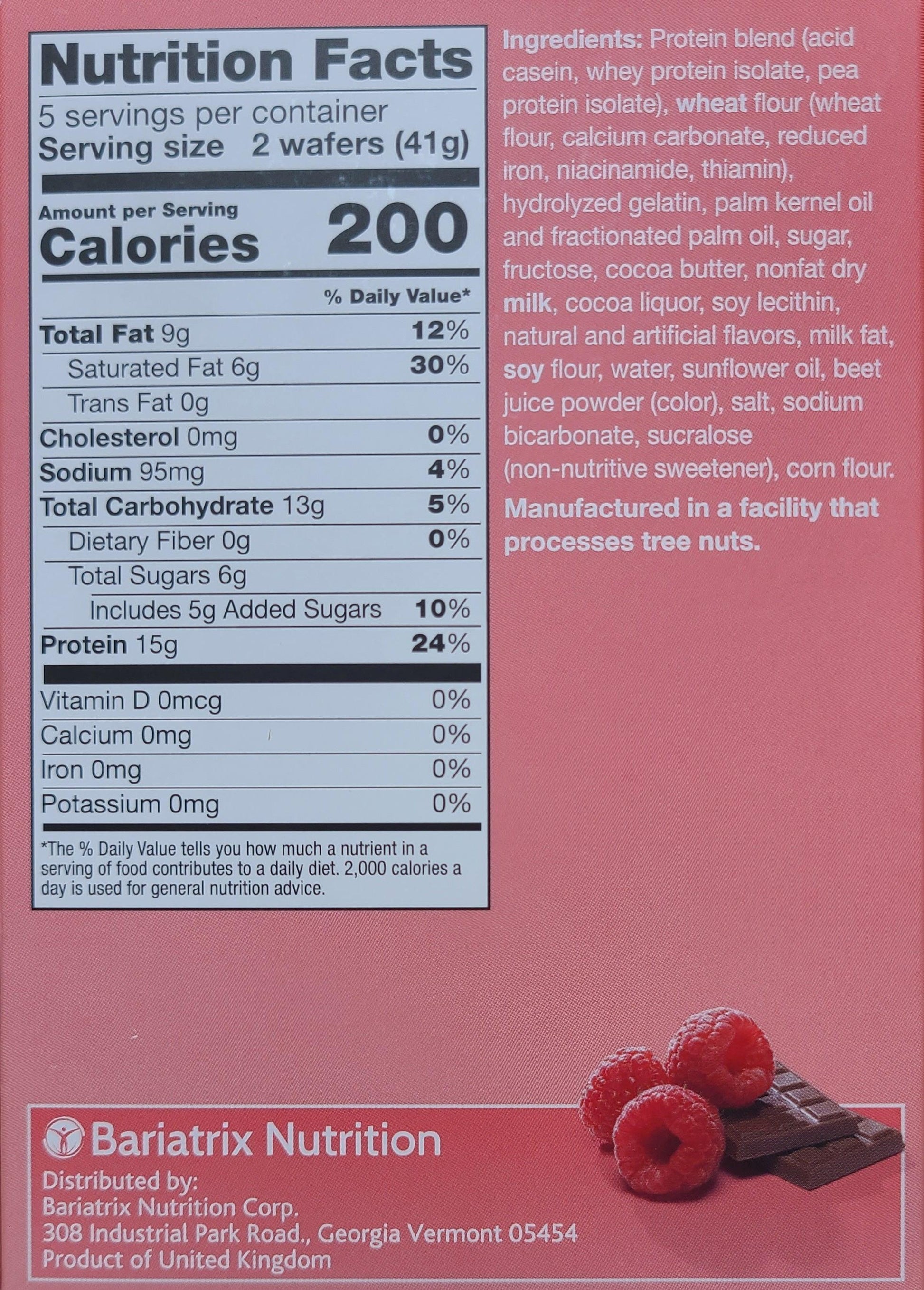 Chocolate Ingredients: Protein blend (milk protein isolate, hydrolyzed gelatin, whey protein isolate, pea protein isolate), Wheat flour, Hydrolyzed Gelatin, Vegetable Oil (Palm Kernel Oil, Palm Oil, Sunflower Oil) Unsweetened chocolate, Sugar, Fructose, Soy Lecithin, Cocoa Butter, Defatted Cocoa Powder, Soy Flour, Water, Salt, Natural and Artificial Flavors, Milk Fat, Sodium Bicarbonate, Sucralose (non-nutritive sweetener), Corn Flour.