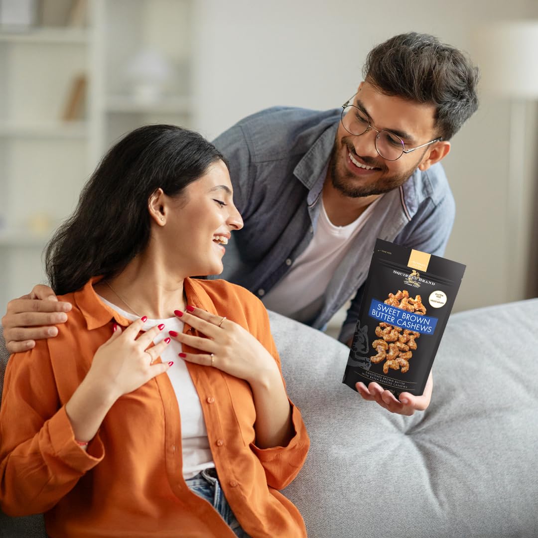 Experience pure decadence with Squirrel Brand Sweet Brown Butter Cashews â a truly luxurious treat! Premium cashews are layered with rich browned butter and sugar to create an irresistibly crunchy, sweet coating that's absolutely mind-blowing.